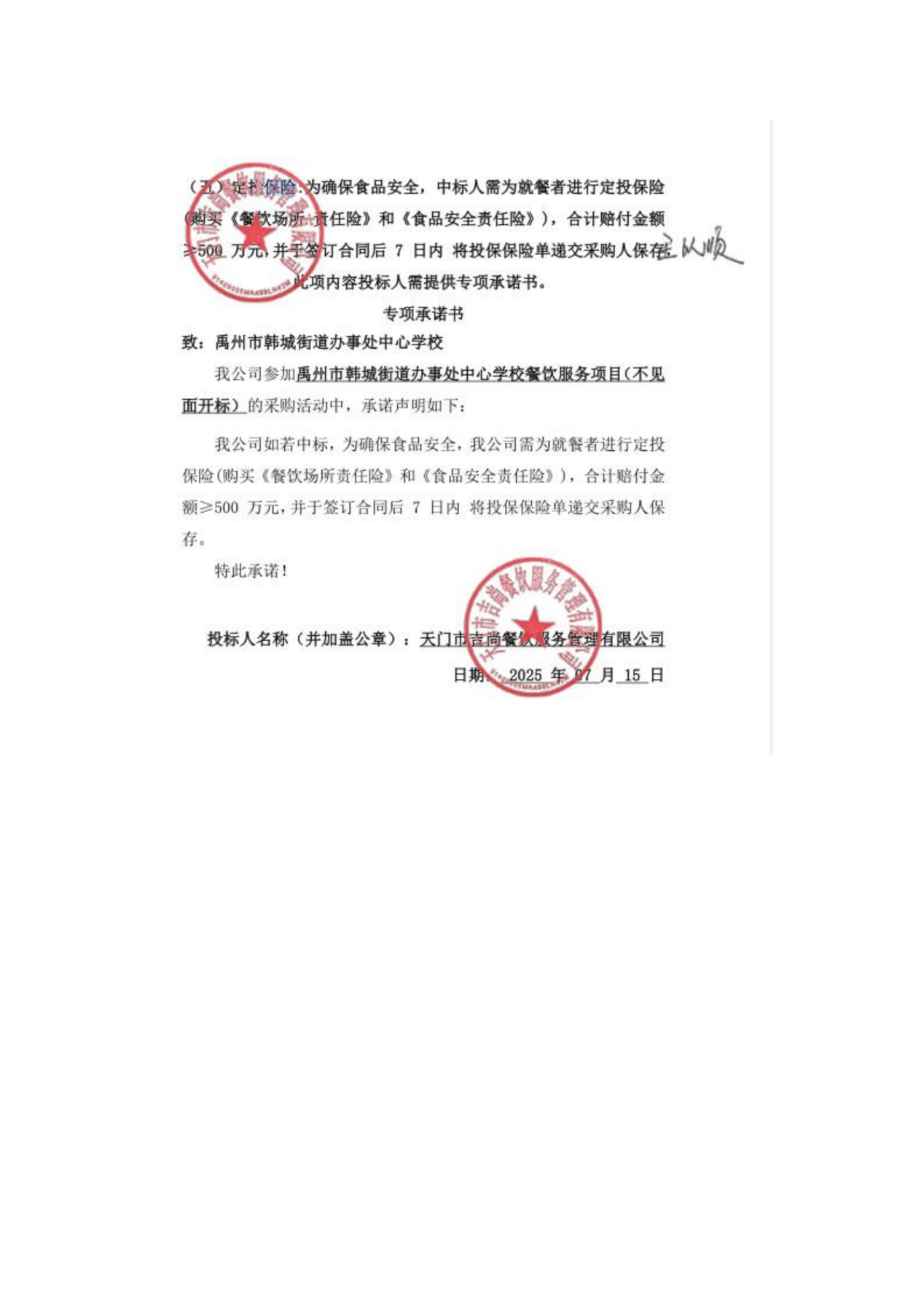 YZCG-DLG2025037 | 禹州市韩城街道办事处中心学校餐饮服务项目 | 天门市吉尚餐饮服务管理有限公司 | 天门市渔薪镇万董村一组 | ||||